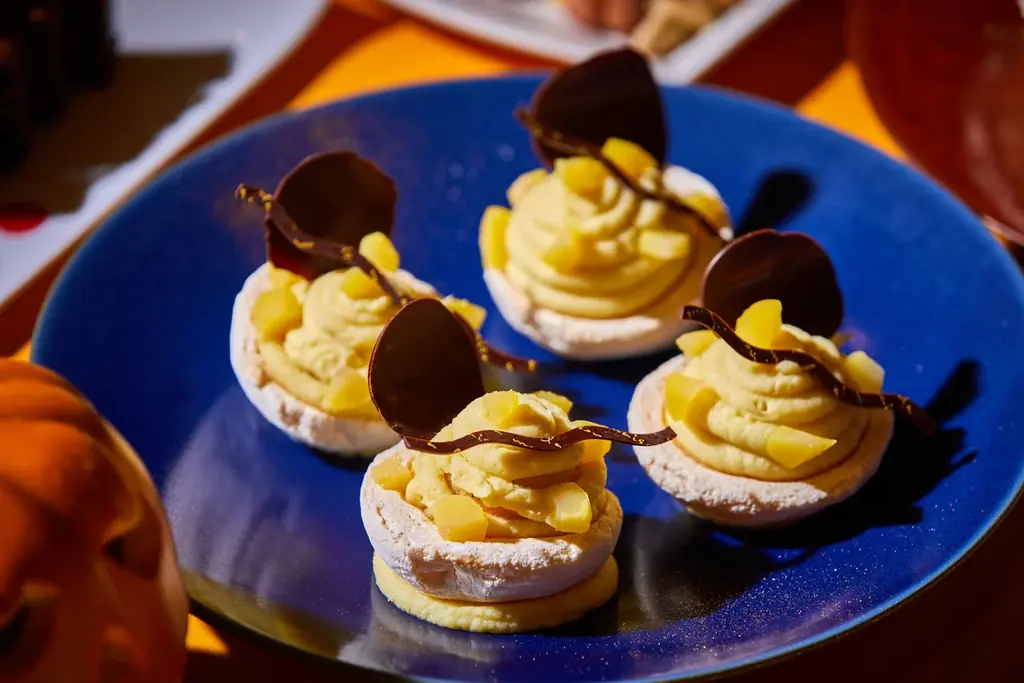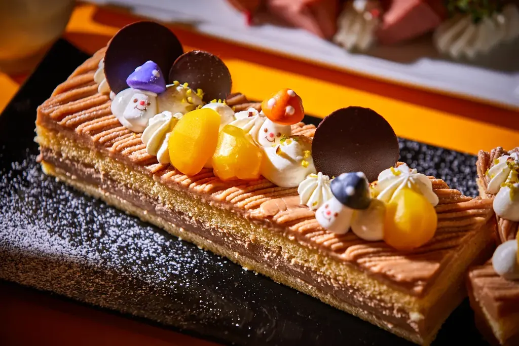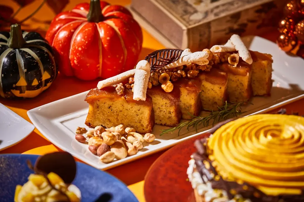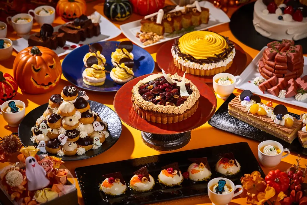 用意されるスイーツは、秋の果実や芋・栗・かぼちゃなどの味覚をふんだんに使ったラインアップで、伝統的なケーキからムース、タルト、そしてハロウィンならではのデコレーションを施したデザートまで多彩です。見た目にも工夫が凝らされており、写真映えするフォルムで提供されます。