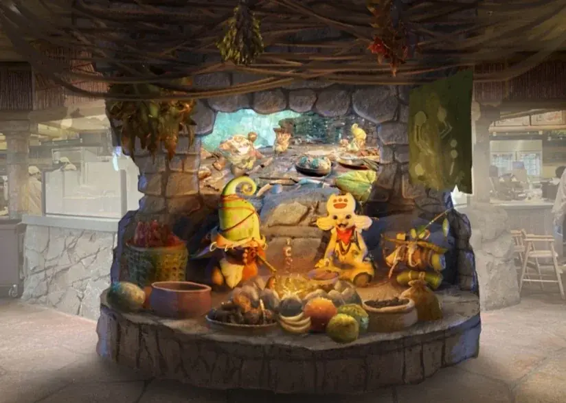 本レストランは作品世界そのままの“超リアル”な再現を目指し、緑豊かなフィールド“緋の森”の一角にあるとされる獣人族・モリバーのアジトを忠実に再現します。店内ではモリバーたちのにぎやかな声と、ハンターの相棒であるオトモアイルーが焚き火の周りでゲストを迎えます。ゲストはハンターとして『モリバーの宴』に参加し、焚き火で提供される豪快な料理を楽しむことができる構成です。