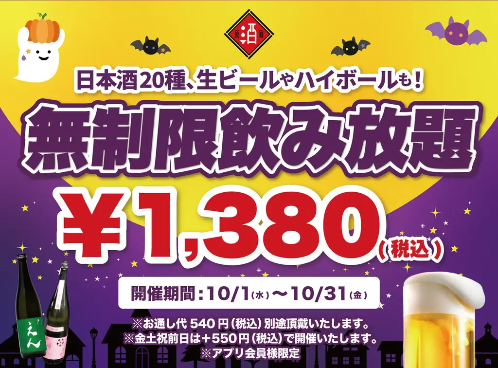 10/1〜10/31限定|日本酒原価酒蔵が時間無制限飲み放題