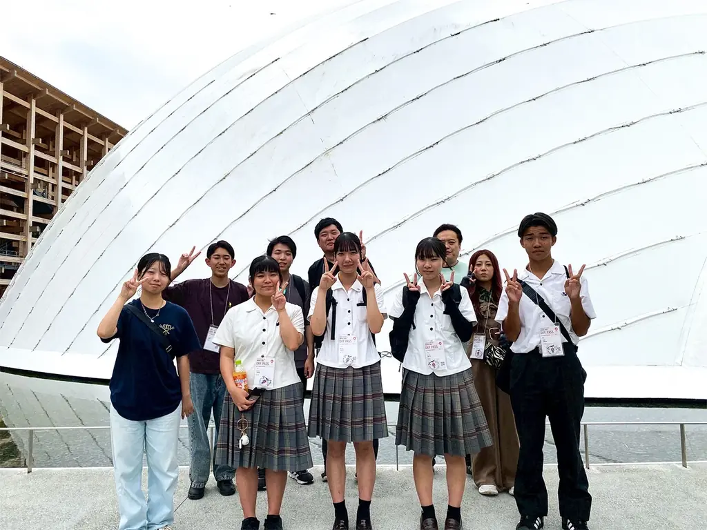 2025年9月28日10時40分、NPO法人唐津Farm&Foodは、唐津南高校「虹ノ松原プロジェクトチーム」の現役生と卒業生を連れて、EXPO2025会場内の「BLUE OCEAN DOME(ブルーオーシャンドーム)」を訪問しました。本訪問は唐津と万博をつなぐ取り組みの一環であり、参加者は海洋プラスチック問題と循環型社会について現地で学び、体験する機会を得ました。