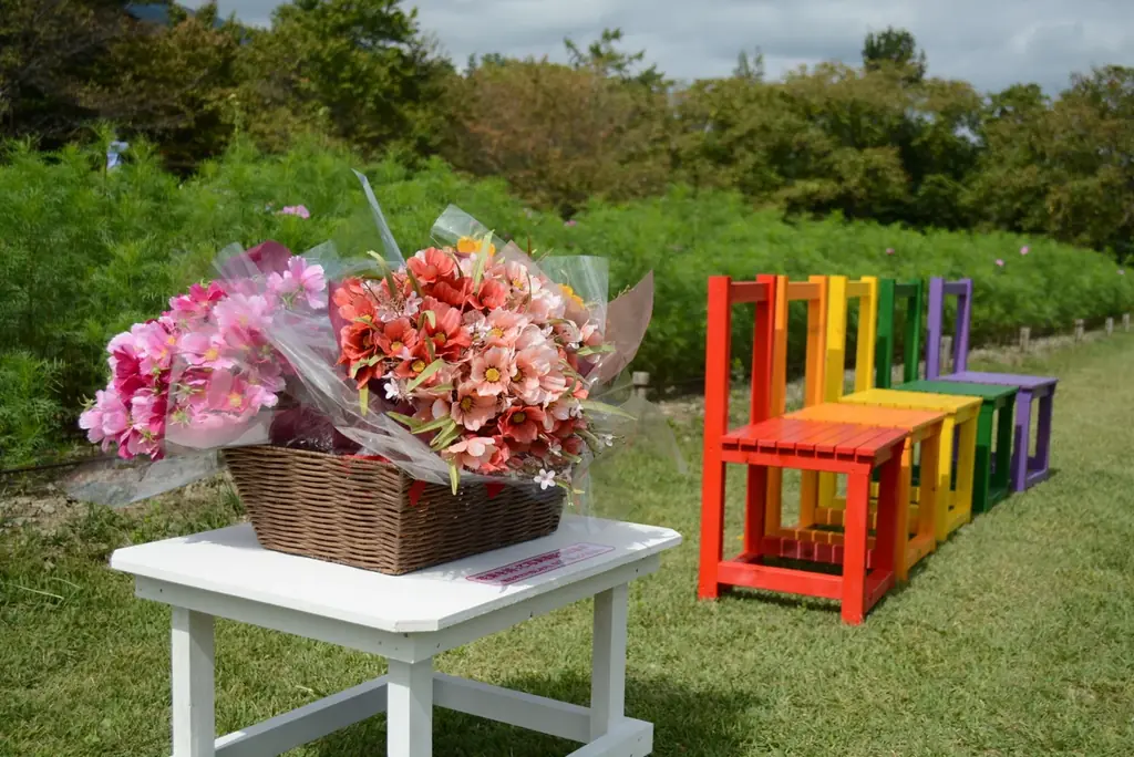 「風景の扉」や新規設置のフォトスポットが用意され、コスモス庭園の中での構図の選択肢が増えています。種類の違いによる花の表情や、背景となる段々畑の地形を活かした写真が撮影できます。
