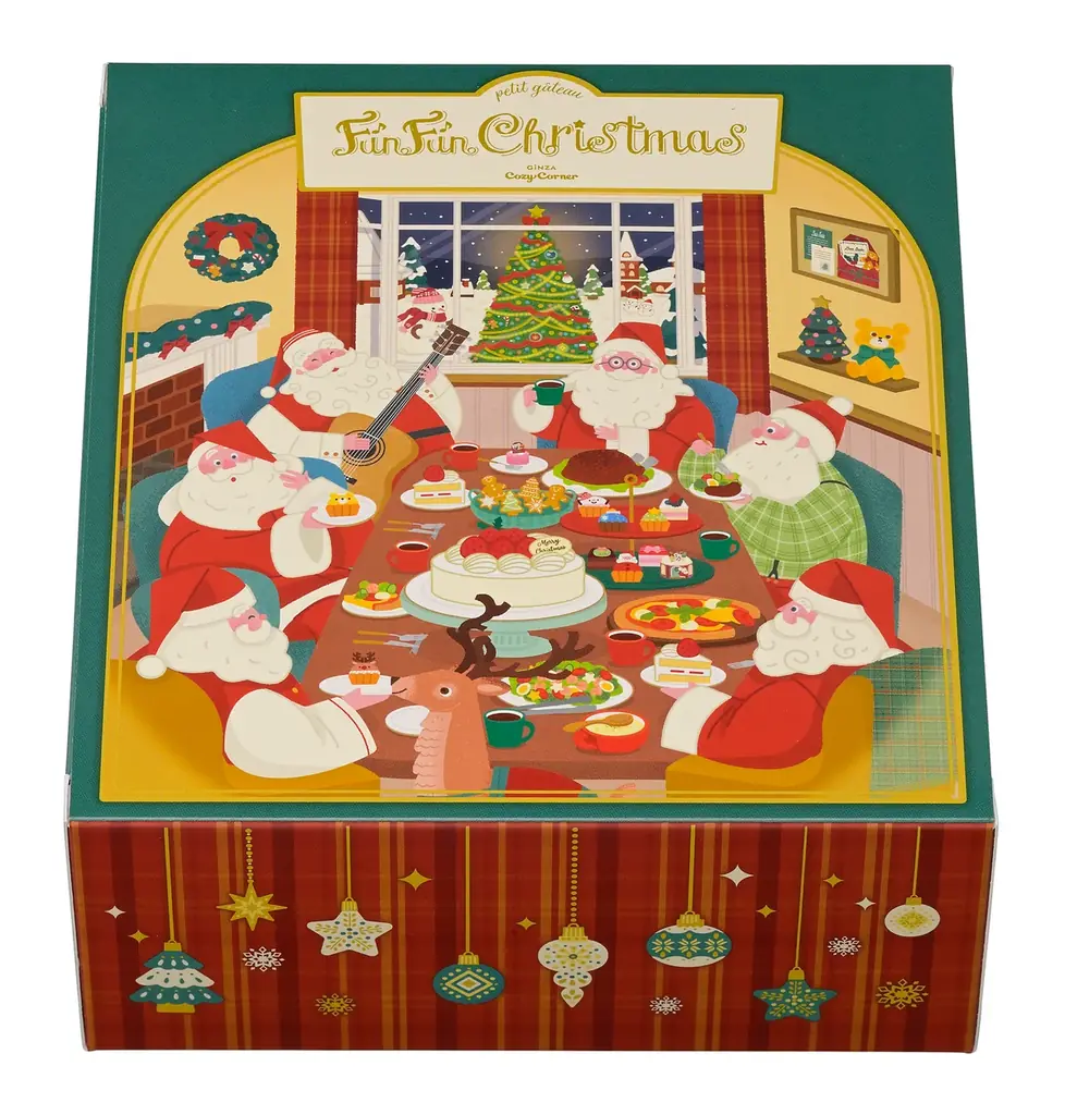 「サンタ村のクリスマス」はプチケーキを詰め合わせた商品で、親子で絵本を読むように楽しめるストーリー性を持たせた構成です。特設サイトではサンタさんの準備から配達までのストーリーも紹介されています。