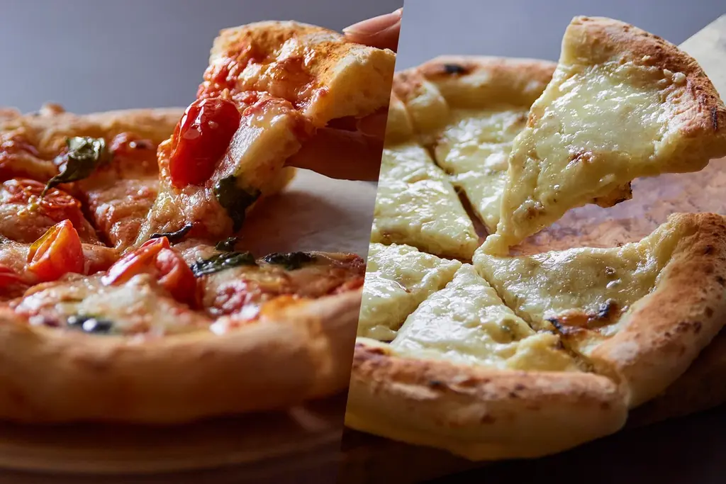 ゴルゴンゾーラ・ピカンテ、マスカルポーネ、グラナパダーノ、モッツァレラの4種のチーズを使用した、濃厚な味わいのホワイトソースベースのピッツァです。チーズそれぞれの個性が重なり合い、深いコクを生み出します。
