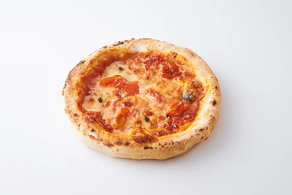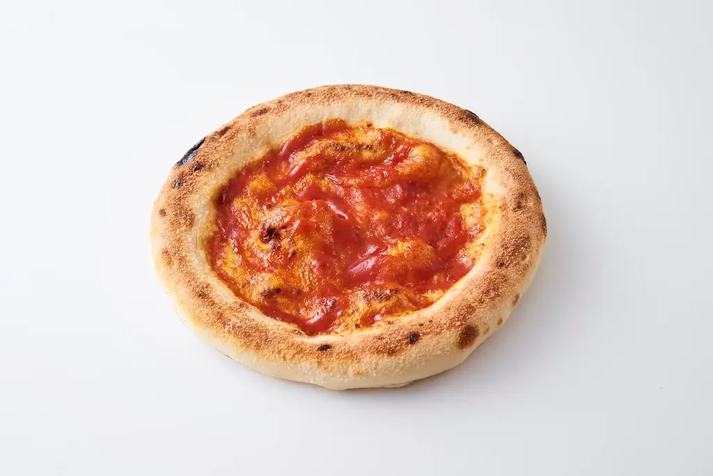 シンプルにトマトソースを塗った生地ベースのピッツァで、リベイク後にしらすや生ハムなどの具材をのせることにより、フレッシュなトッピングアレンジが可能です。店でのアレンジ次第で和風・洋風いずれの展開も可能となります。