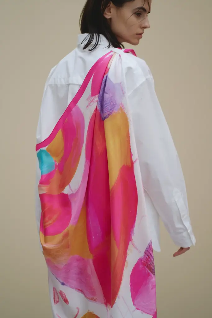 今回の出品アイテムはスカーフをはじめシャツ、スカート、ネクタイ、ブラウスなど多彩で、HERALBONYの提唱する「日常に溶け込むアート」を体感できる構成となっています。会場ではアート作品が用いられたテキスタイルや衣料の具体的な見え方を実際に確認できます。
