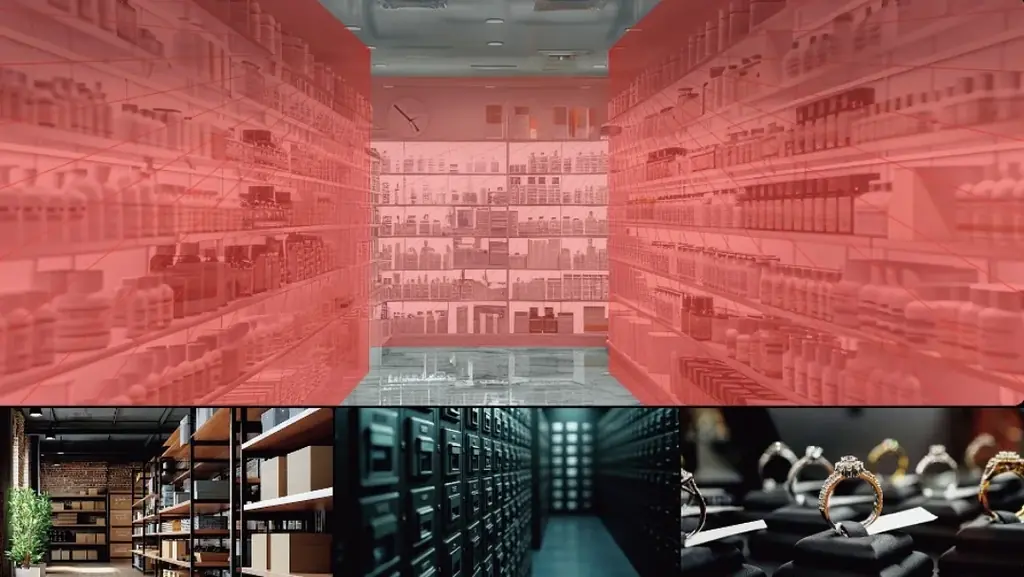 - 薬局、宝石店、美術品保管庫などの商業施設内の侵入検知