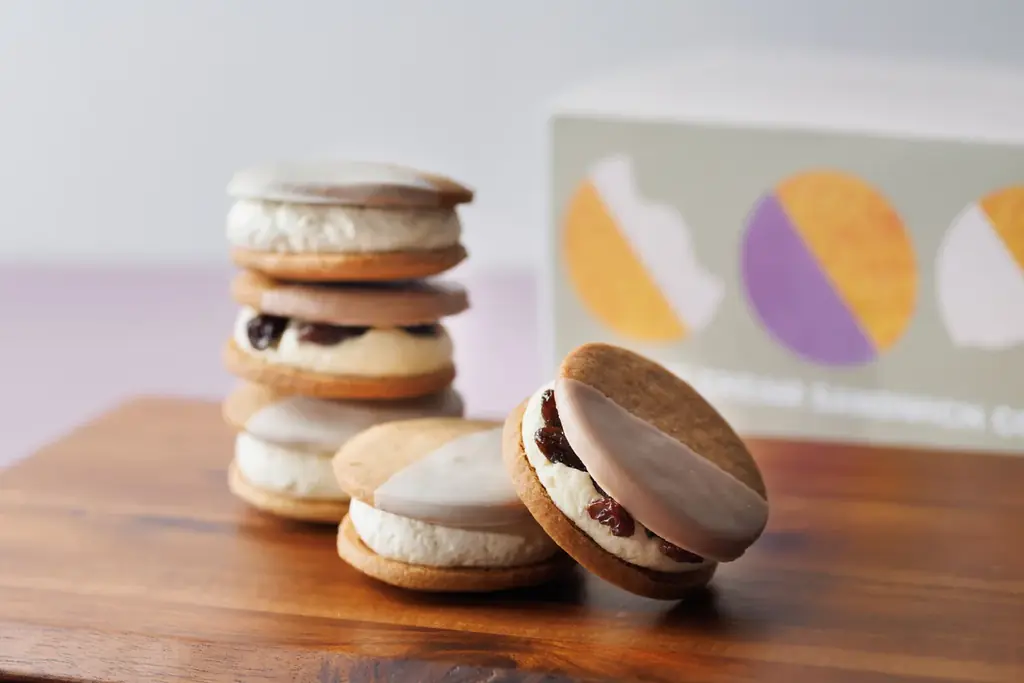 同商品は、すりおろしたオレンジピールとシナモンパウダーを練り込んで香ばしく焼き上げたクッキーに、ミルキーでコクのあるチーズクリームを挟んだサンドスイーツです。今回は定番の〈プレーン〉と、季節限定の〈レーズン〉を1箱に収めたセットで提供します(※画像はイメージです)。