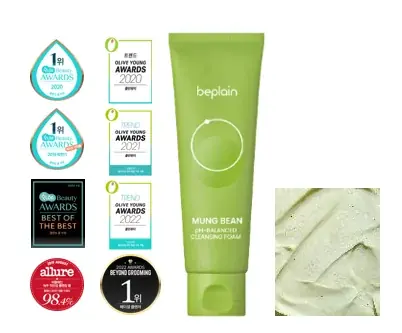 beplainは韓国国内の複数のビューティーアワードで受賞歴を持ち、主要アワードでの合計受賞数は16冠とされています。特に緑豆弱酸性洗顔フォームに関しては各種実績が集中しており、累計販売数量や受賞履歴がブランドの主要なアピールポイントとなっています。