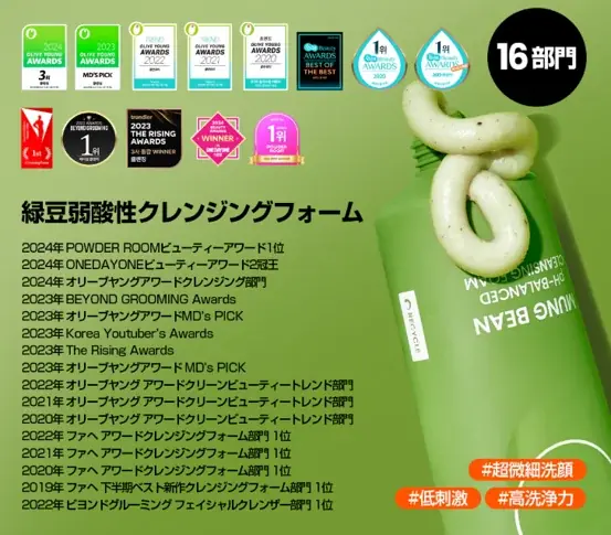 - 実績: 主要ビューティーアワードで16冠達成(緑豆ラインを含む主要製品群)