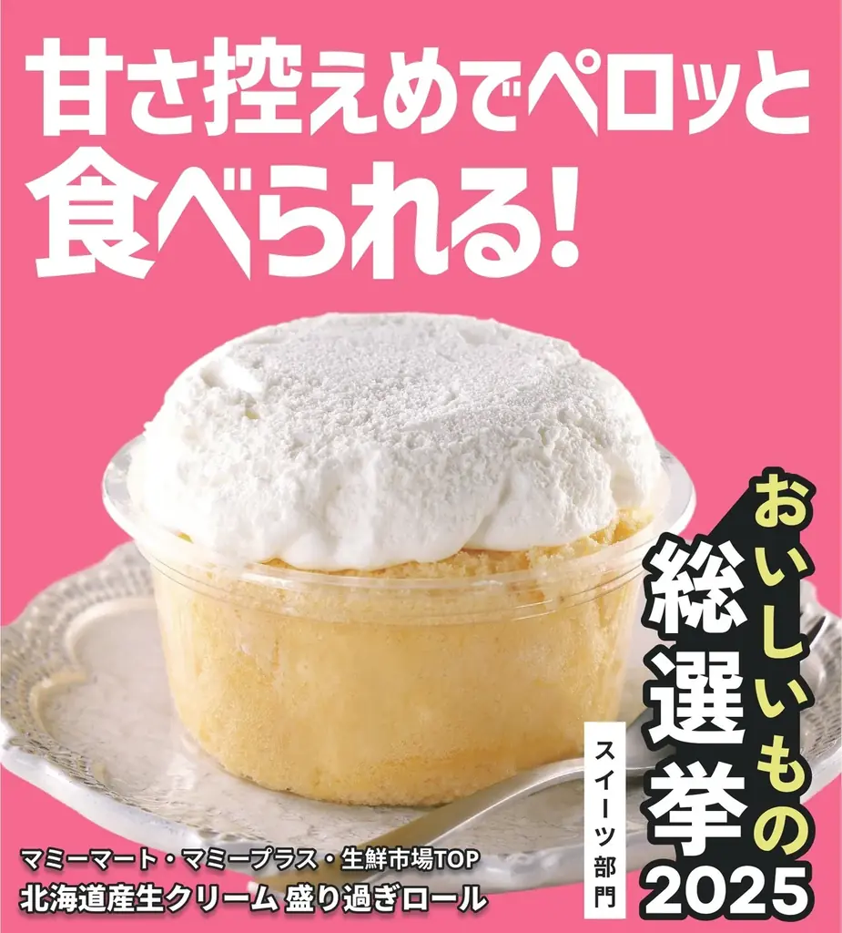 - 北海道産生クリーム 盛り過ぎロール(マミーマートグループ) 販売エリア:埼玉、千葉、東京、栃木、群馬