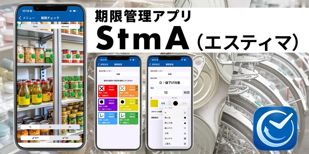 アプリ名「StmA」は、Simple Threshold Markers AsCodeの意味から命名されている。名称が示す通り、期限の閾値をシンプルな印で直感的に把握できることを狙いとしている。期限の判定は複数ステータス(期限切れ・要注意・余裕あり等)に分類され、色とマークの組み合わせで視覚化する。