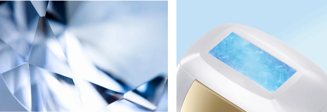 Ulikeが全商品に搭載しているサファイア冷感技術は、照射面に高純度のA++級サファイアクリスタルを採用することで、照射時の熱感や刺激を低減し“痛みレス”(個人差あり)を目指す独自技術です。冷却をしながら光を照射するため、保冷剤や冷却ジェルが不要で継続的な自宅ケアの利便性を高めています。