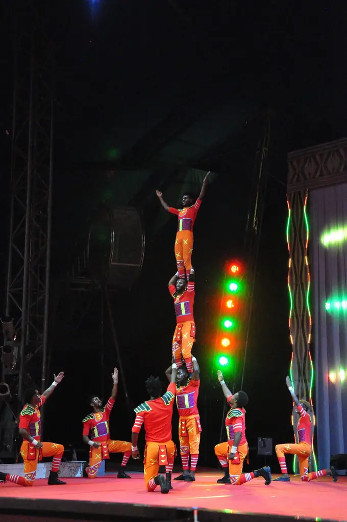 主な演目 | 空中ブランコ、ジャグリング、デスホイール、エアリアル・ソード・バランシング、リボンアクロバット、アフリカン・ハンド・ヴォルテージ |