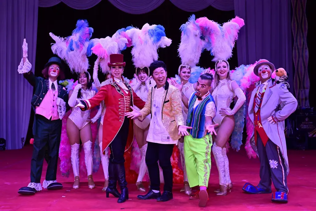 初日には特別ゲストとして吉本新喜劇座長・吉田裕さんが舞台に登場しました。舞台上でクラウン(ピエロ)と掛け合いを行い、会場は笑いと拍手に包まれました。吉田さんは本公演を一日座長として紹介し、公演の持つエンターテインメント性を讃えるコメントを残しています。