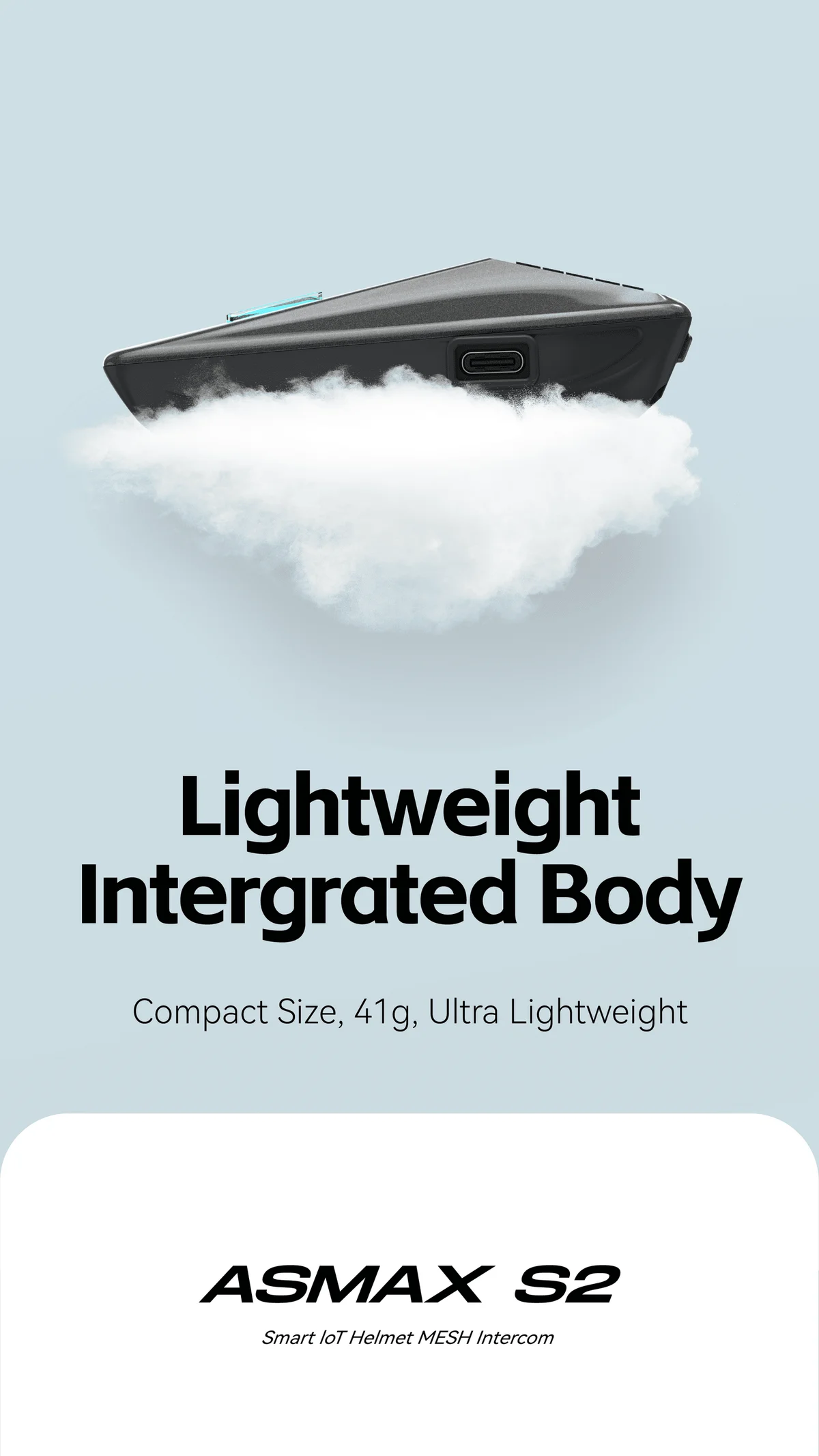ASMAX S2は、ソロライダーや少人数(2〜8人)でのツーリングを主軸に据えたユーザーを想定して設計されています。流線型のエアロデザインを採用し、空気抵抗を抑えることに配慮した外観を持ちながら、重量は41gと軽量です。