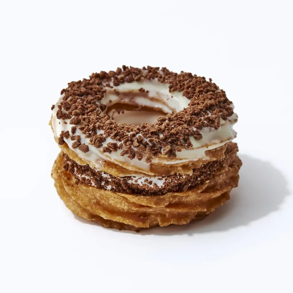BAクルーラー チョコクランチ | ¥378 | たっぷりのホイップクリームをサンドし、ホワイトチョコとチョコクランチをトッピング。 |