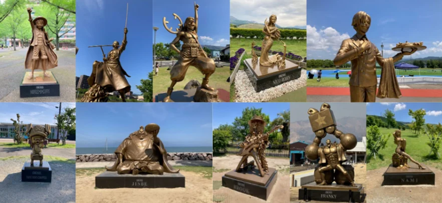 巡回 | 熊本県庁(ルフィ像)、熊本市動植物園(チョッパー像)、住吉海岸公園(ジンベエ像)、御船町ふれあい広場(ブルック像)、ミナテラス(サンジ像)、俵山交流館 萌の里(ナミ像) |