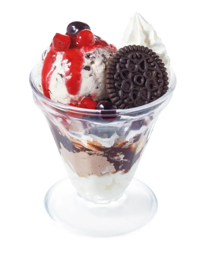 クッキー&クリームパルフェ ベリーソース添え | ココアビスケットとクッキー&クリームのアイスにベリーソース | 390円 | 429円(税込) |