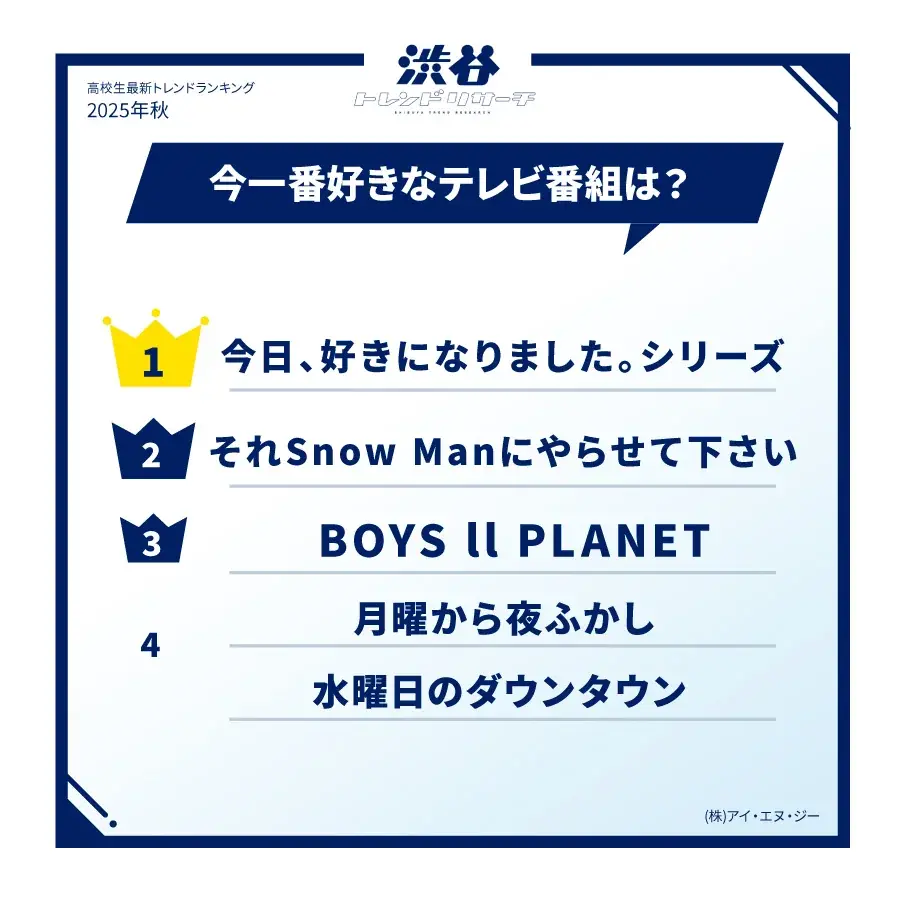 株式会社アイ・エヌ・ジーが2025年9月30日11時25分に公表した「渋谷トレンドリサーチ 2025年秋の特大号」は、流行に敏感な高校生(15〜18歳)200名を対象に行ったWEBアンケートをもとに、Z世代のいまを細やかに可視化した調査レポートである。調査期間は2025年9月3日〜9月10日、回収有効回答数は200名で、渋谷を拠点に活動するINGteens高校生メンバーの生の声も反映している。