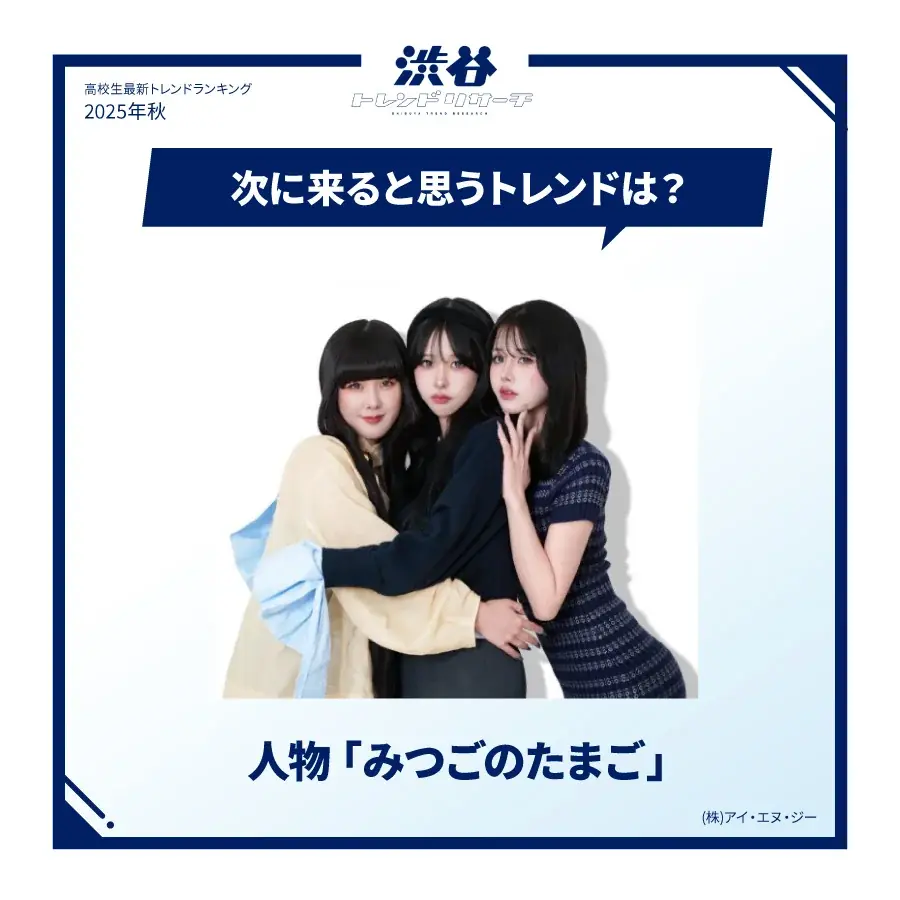 入選コメント(原文):「渋谷トレンドリサーチのネクストトレンドに選んでいただけて、見たことあったということもあり、まさか私たちが!?って感じで、びっくりです!笑”みつごのたまご”として3人で出られるのが本当に嬉しく思います。トレンドを毎日チェックし、私たち自身を発信していくために試行錯誤で必死な毎日です。そして今回トレンドとして紹介されて何とも感慨深い気持ちになりました。こうゆうところで紹介していただけることで、新しい人達に出会えるきっかけになればとワクワクしています。これからもSNS活動を楽しみながら頑張っていくので、応援よろしくお願いします!」