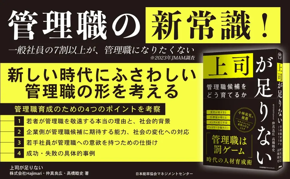 株式会社Hajimariは2025年9月30日17時35分付で、仲真良広氏・高橋睦史氏共著の書籍『上司が足りない 管理職候補をどう育てるか』が、株式会社日本能率協会マネジメントセンター(JMAM)より同日発売されることを発表しました。本稿では本書の主張と書誌情報、著者の経歴、そして企業が直面する管理職育成の実態を整理して紹介します。