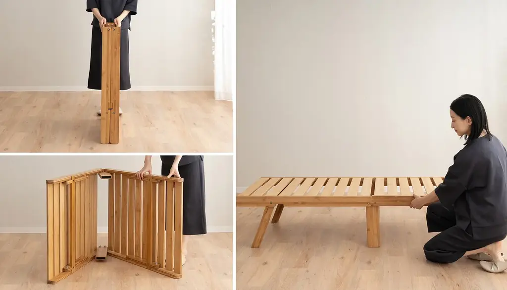 天然竹の折りたたみすのこベッド「WABINE(侘寝)」が販売開始