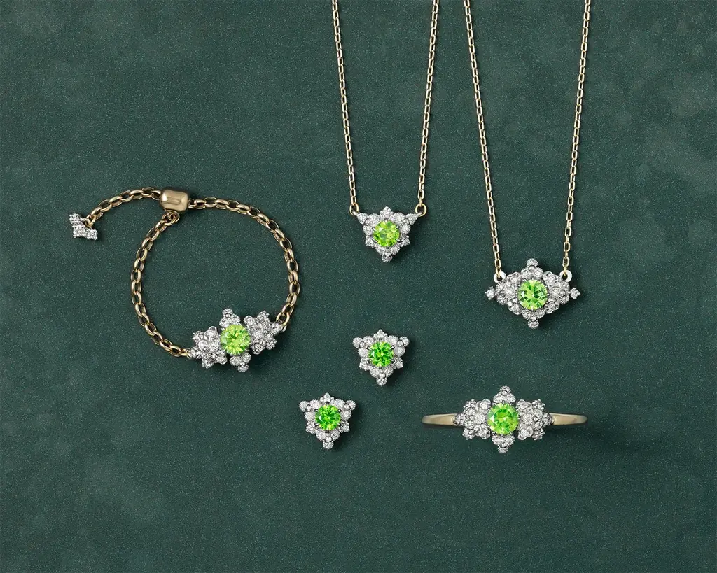 デマントイドガーネットは希少性の高いグリーン系のガーネットで、深みある色合いが特徴です。こちらも数量限定のカラーストーンとしてラインナップされています。