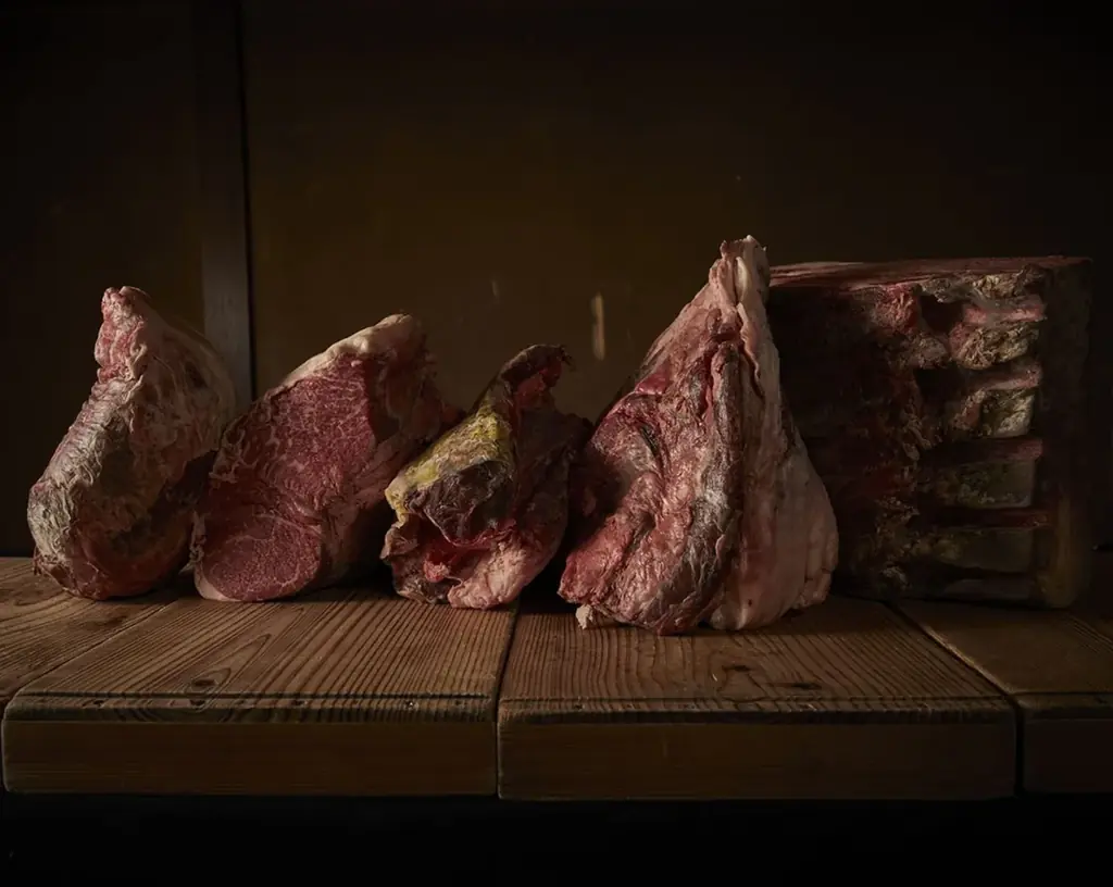 具体的には、熟成により高まる水溶性旨味成分(アミノ酸や核酸など)が増え、筋組織が徐々に分解されることで歯ざわりが良くなり、余韻のある香りが立ちます。噛むほどに広がる力強い肉の旨味と香りが特徴であり、霜降りに頼らない赤身肉ならではの味の輪郭が明瞭になります。