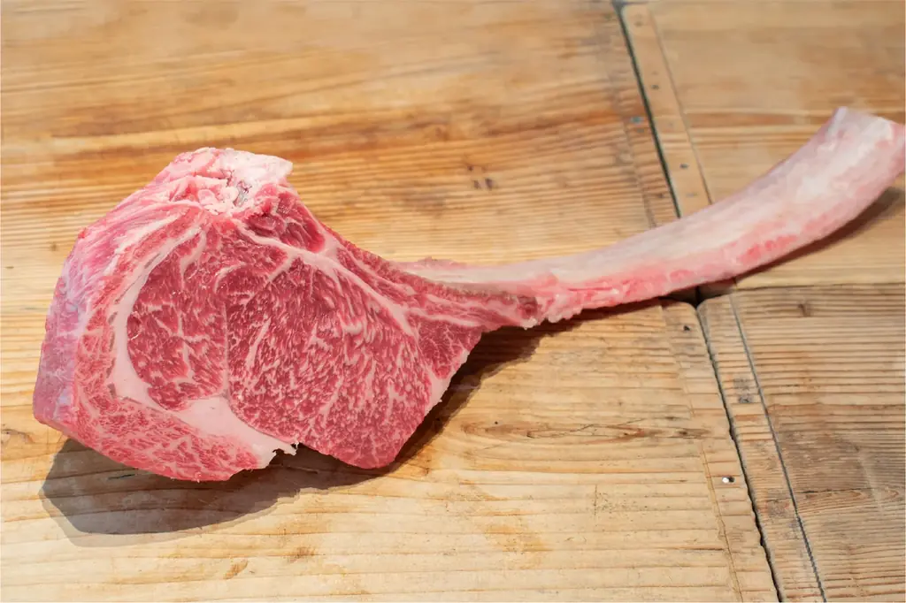 トマホークステーキ | 骨付きリブロースを骨に沿って豪快にカット。骨周りの旨味を含む迫力のある一品。 | 1カット 約1kg | 28,500円 | 2,850円 |