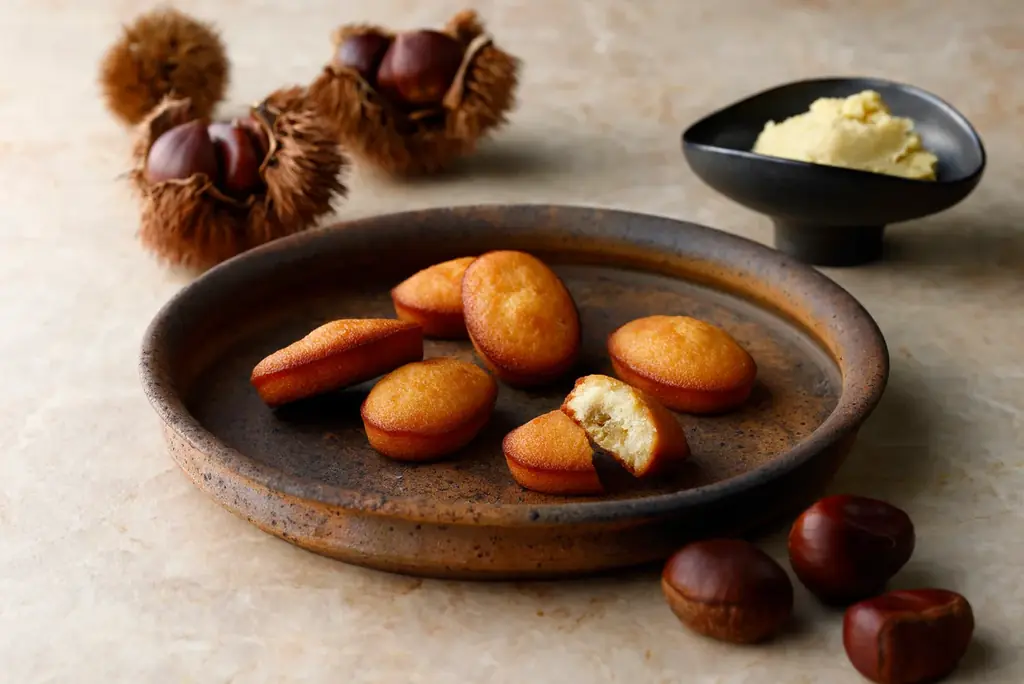 プレスリリースでは、マロンペーストはブランド和栗「笠間の栗」と砂糖のみで作られていることが明示されています。余計な風味を加えず栗本来の香りと甘みを重視した配合です。加えてフィナンシェ生地はバターとアーモンドが主役のクラシックな配合で、チーズの風味もアクセントとして含まれています。