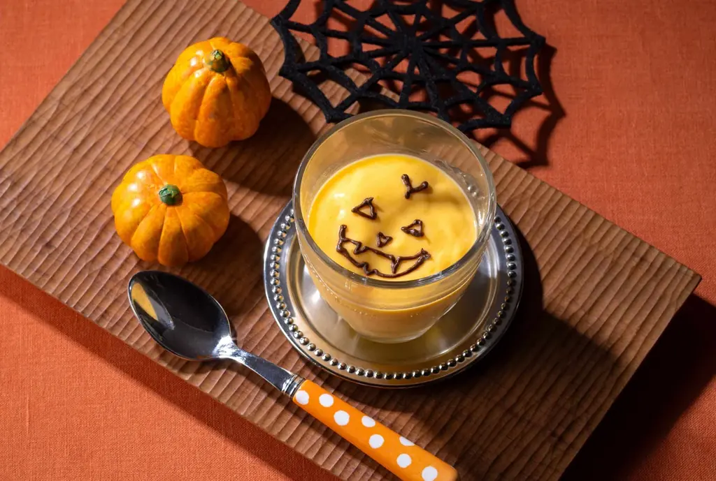 期間限定でデザートコーナーに登場する「かぼちゃピューレ」を用いることで、通常の「とろ〜りプリン」をハロウィン仕様の「かぼちゃプリン」にアレンジできます。かぼちゃピューレをプリンの素に混ぜるだけで作ることが可能です。数量限定のため、なくなり次第終了となります。