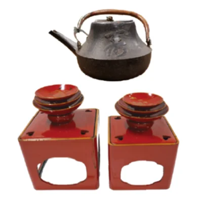 - 銚子、三蓋盃、平椀、布袋(ほてい)、木箱など。用途や保存方法、貸出しの慣行について説明。