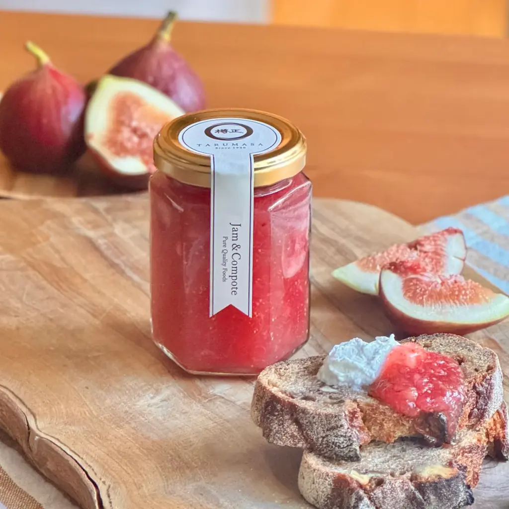 いちじくジャムは旬の国産いちじくを贅沢に使用し、甜菜糖のみを加えて仕上げています。樽正の伝統的な炊き上げにより、にごりのない美しいピンク色と、完熟したいちじくの繊細で豊かな香りが特徴です。