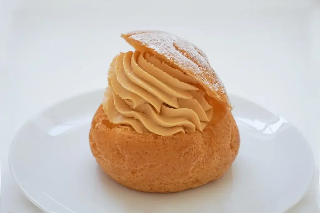 商品説明:ふんわり軽いシュー生地にまろやかなカスタードクリームを重ねた2層仕立て。ゲランドの塩を振りかけた「甘じょっぱさ」が特徴。
