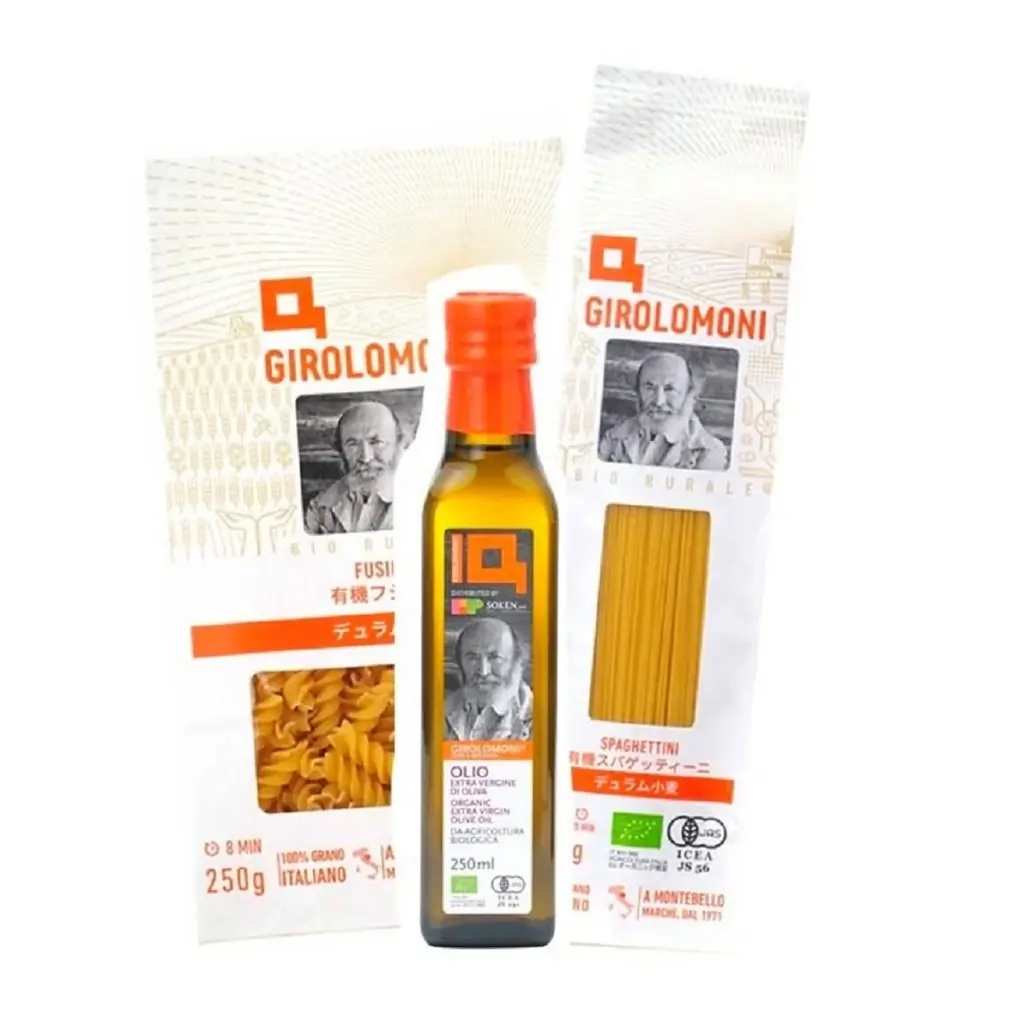 内容:EXVオリーブオイル、有機スパゲッティ、有機フジッリ