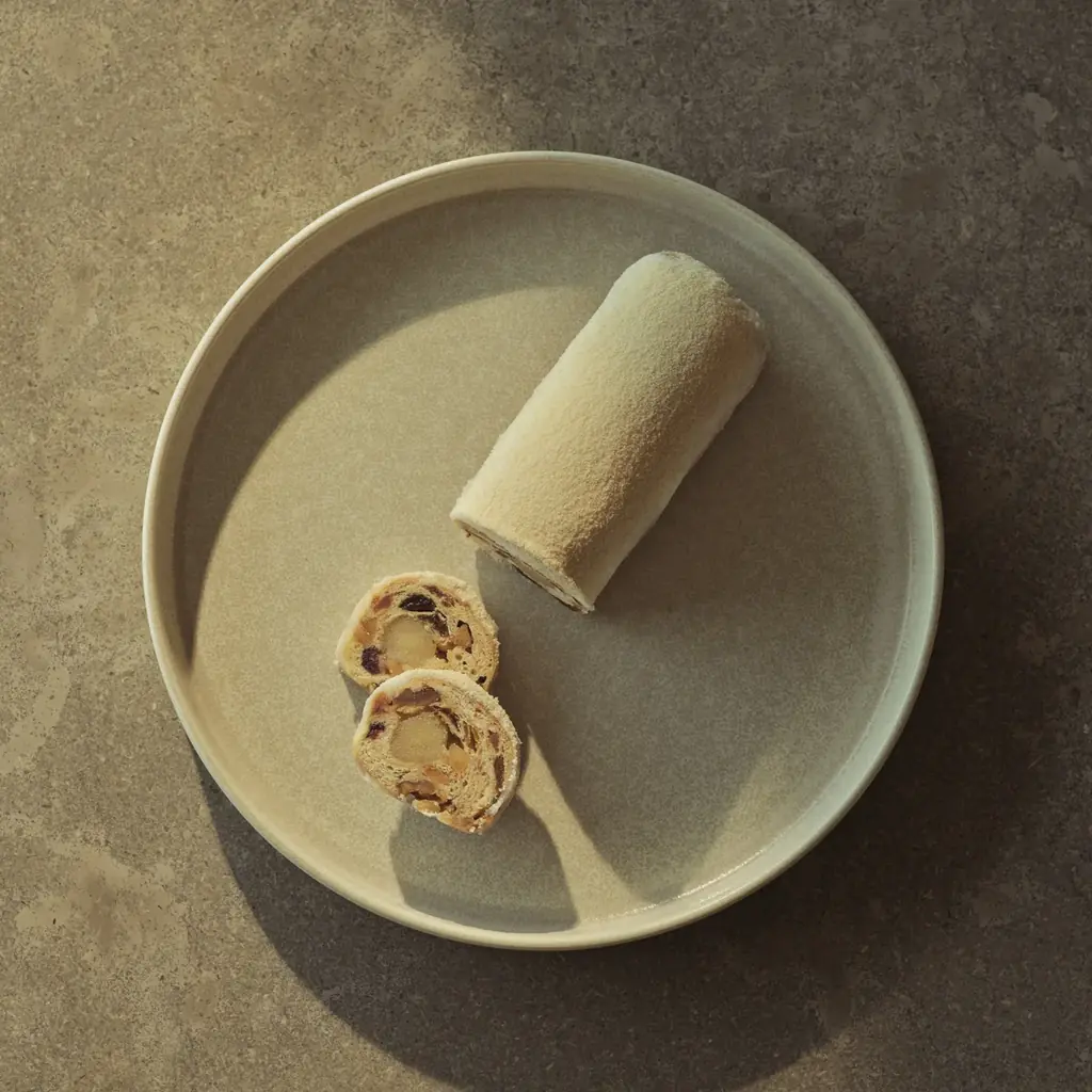メープルスイーツコンテストでの優勝経験をもつ野口シェフが手がける『メープル シュトーレン』は、香り高いメープルシロップを基軸に、シナモンやラム酒に漬け込んだクルミ、レーズン、クランベリー、アプリコット、イチジクをたっぷり練り込んだ生地が特徴です。生地の中にはしっとりしたマジパンを隠し味として忍ばせています。