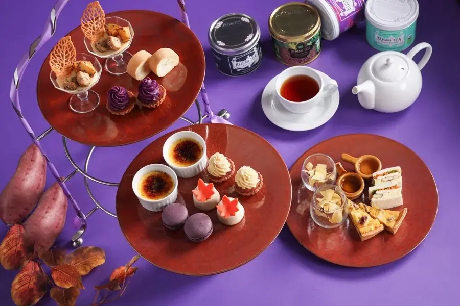 11月のアフタヌーンティーは『スイートポテト』がテーマです。スイーツはさつまいもや紫芋のクリームを活かした品が中心で、甘さのバリエーション、食感の違い、そして見た目の彩りが意識されています。