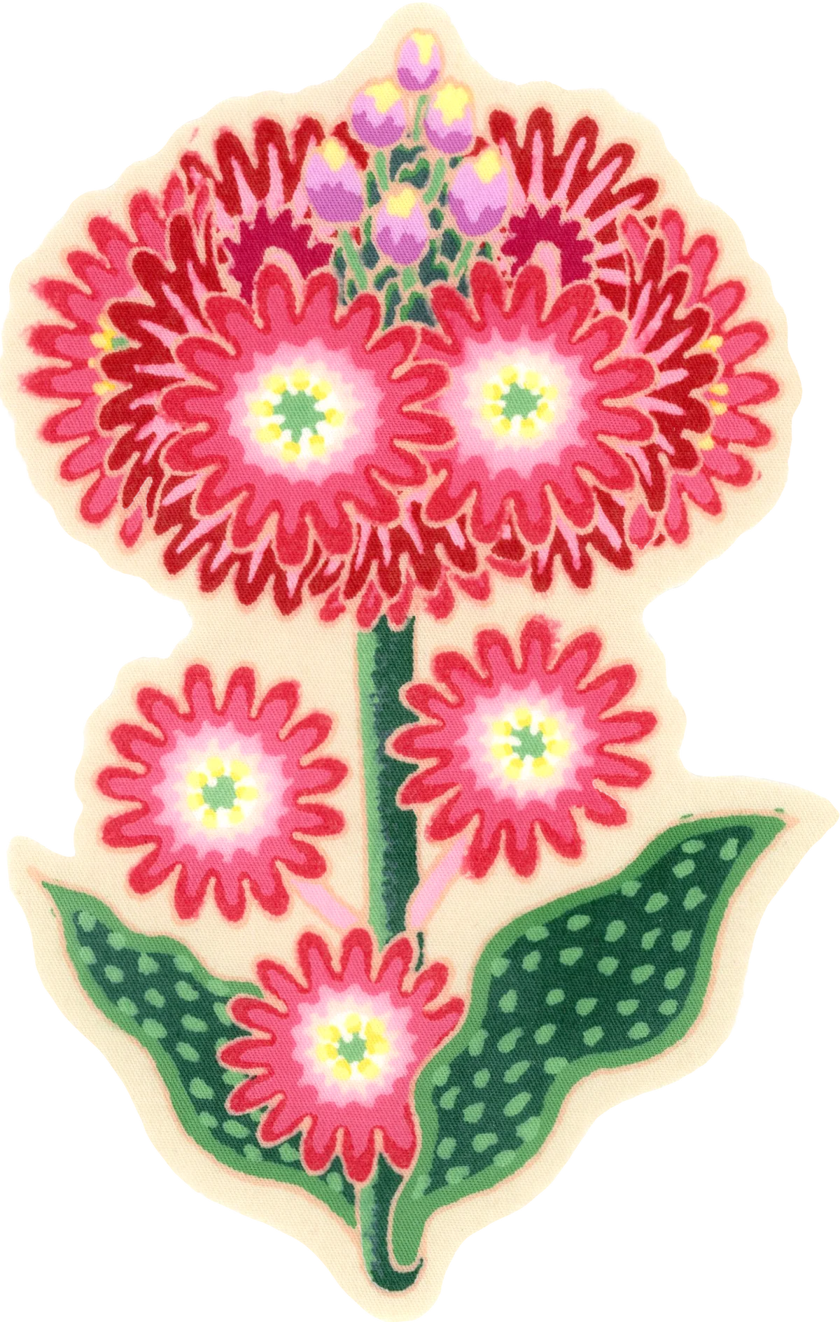 なかむら氏は油彩を学んだ後、女子美術大学短期大学部でテキスタイルを専攻し、そこで筒描染に出合いました。素材・道具・工程が従来のファインアートとは異なる一方で、「描く」という共通の動作から作品が生まれる点に興味を抱き、以来、筒描染を主要な制作技法として採用しています。