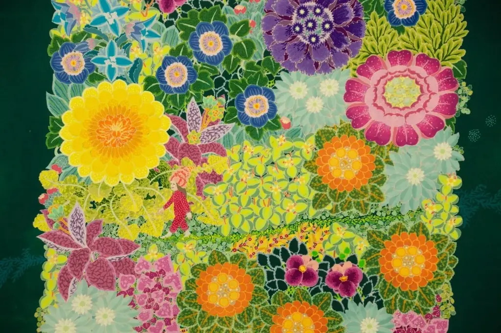 作品では島や庭をモチーフに色彩豊かな景色を描き、個々の命の明暗が織りなす世界を表現しています。幼少期から親しんだ児童文学や絵本、自然、音楽が表現の基盤にあり、植物や妖精のイメージに重ねて、色・形・縮尺を再解釈することで、記憶と観察の間に漂うリアリティーを追求しています。