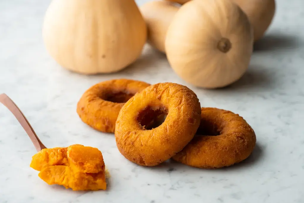 - 生地に対して30%以上を目安にかぼちゃを練り込み、風味豊かなドーナツにする。