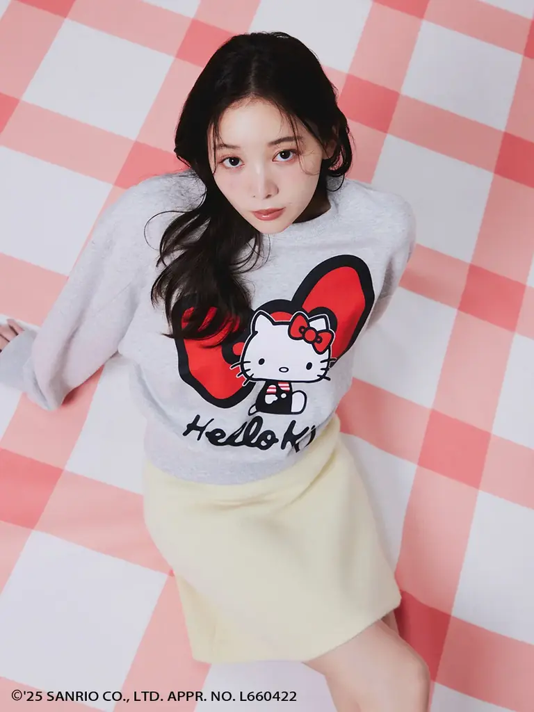 | 【HELLO KITTY】スウェットプルオーバー | GRY, BLK, BUR | F | ¥12,980 | ドロップショルダー、袖にダーツで立体的なフォルム。大きなキティのリボンを配したグラフィック。 |