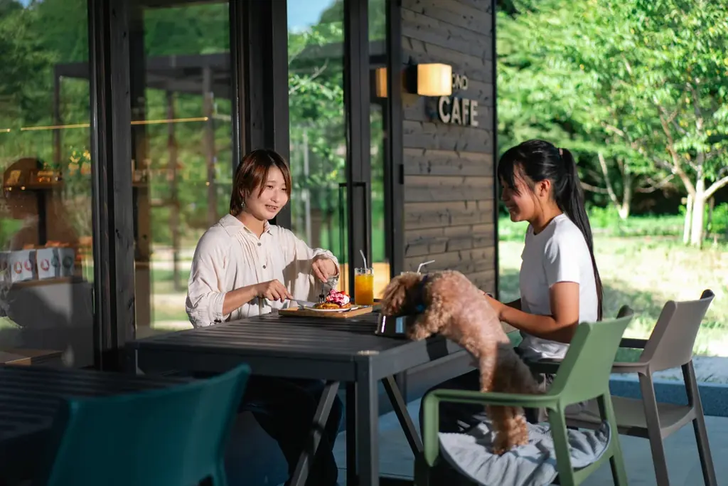 - OND CAFE:太陽の光や風、雨音を感じながらコーヒーやダッチパンケーキを提供。ペット同伴OKの席が設けられています。