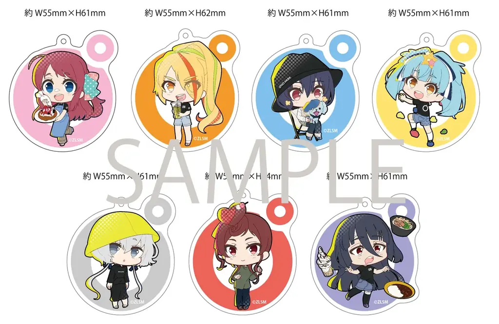 - アクリルキーホルダー:価格 1,200円(税込)/種類 7種。バッグや鍵に付けられるちびキャラデザイン。
