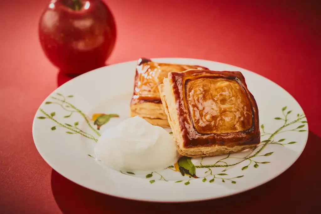 今回のアフタヌーンティーでは、シナモン風味の温かい「アップルパイ」をはじめ、りんごをあらゆる食感と風味で表現したスイーツが揃います。手仕事と感性を活かした見た目の華やかさと、素材の持ち味を引き出す味の構成が特徴です。