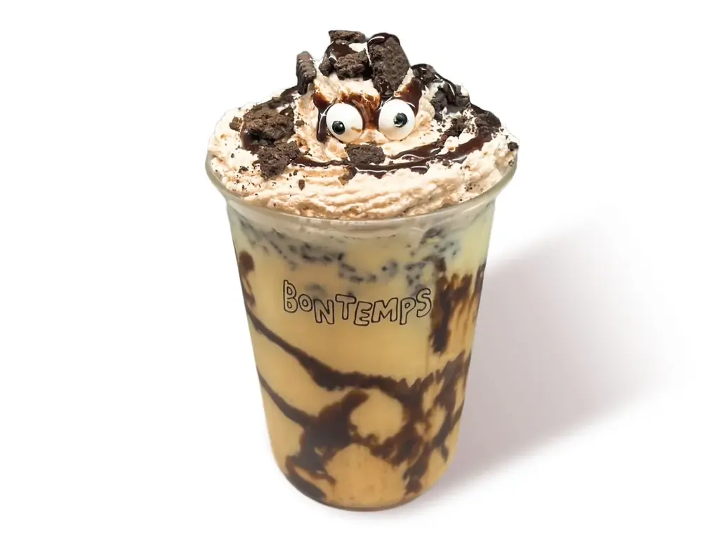 まろやかなソイミルクチョコをベースに、濃厚なチョコクリームとチョコソースを重ねた贅沢なドリンクです。トップには砂糖菓子の“目玉”を飾るなど、ユニークな見た目の演出も施します。