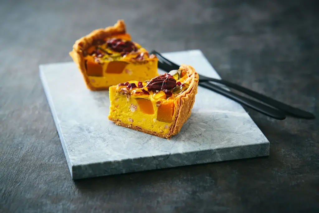 惣菜売場では、素材の味を活かしたかぼちゃのメニューが多数並びます。<RF1>の「かぼちゃとピーカンナッツのキッシュ」(1カット)は648円で、10月23日(木)から販売開始です。販売場所は地下1階 惣菜売場です。