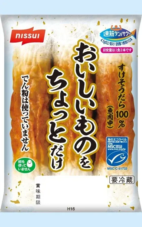 今回の「フィッチュロス」に使用される主な商品は、ニッスイの「おさかなのソーセージ」と「おいしいものをちょっとだけ(ちくわ)」です。これらはすり身をベースに加工された手軽に食べられる魚の加工食品として長年提供されてきました。