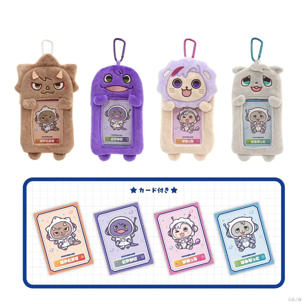 価格:各2,000円(税込)。全4種(各種カード1枚付き)。カードホルダーのサイズは約W112mm×H195mm×D14mm以内、カードホルダーカラビナ込みで約H220mm、カードは約W63mm×H88mm。素材はポリエステル、PVC、アルミ(カードホルダー)、紙(カード)。購入はお一人様1会計につき各5点までとなります。