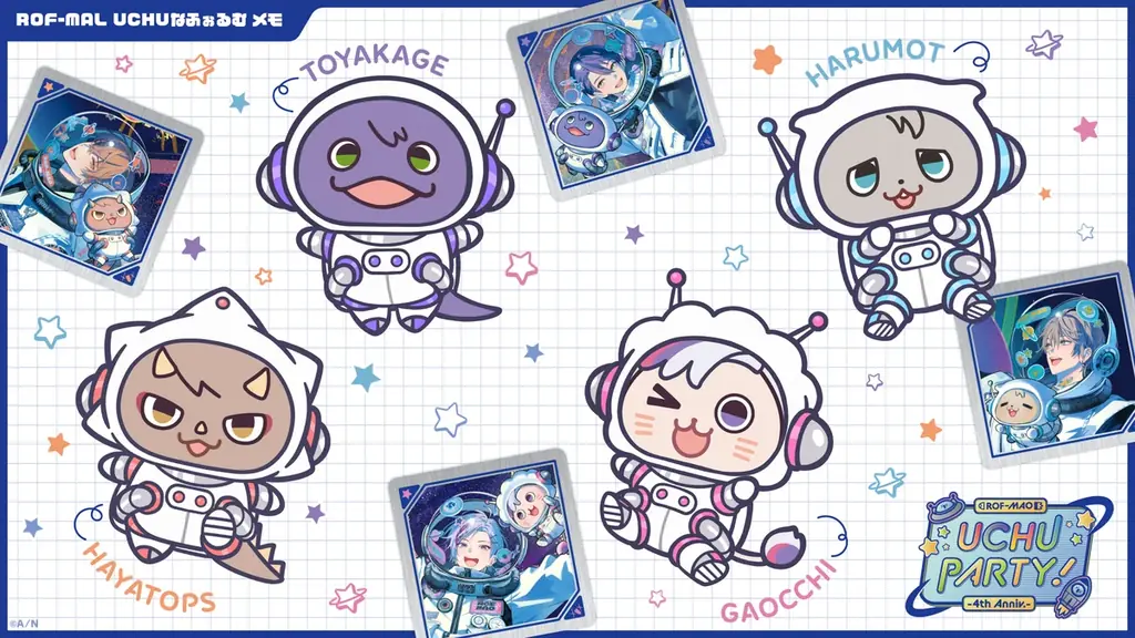 ANYCOLOR株式会社が運営するVTuber/バーチャルライバーグループ「にじさんじ」に所属するユニットROF-MAO(加賀美ハヤト、剣持刀也、不破湊、甲斐田晴)のデビュー4周年を記念したグッズシリーズ「ROF-MAO UCHU PARTY! -4th Anniv.-」が、にじさんじオフィシャルストアにて2025年10月21日(火)18時から販売開始となります。