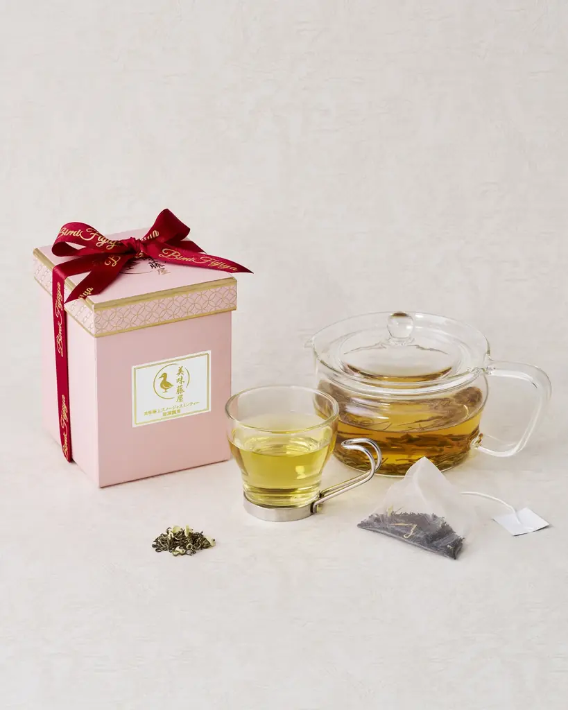 - 美味極上スノージャスミンティー 碧潭飄雪— 四川省の高地で摘まれた上質な緑茶とジャスミンを使用。ティーバッグ2g×10個、価格:¥3,240(税込)。